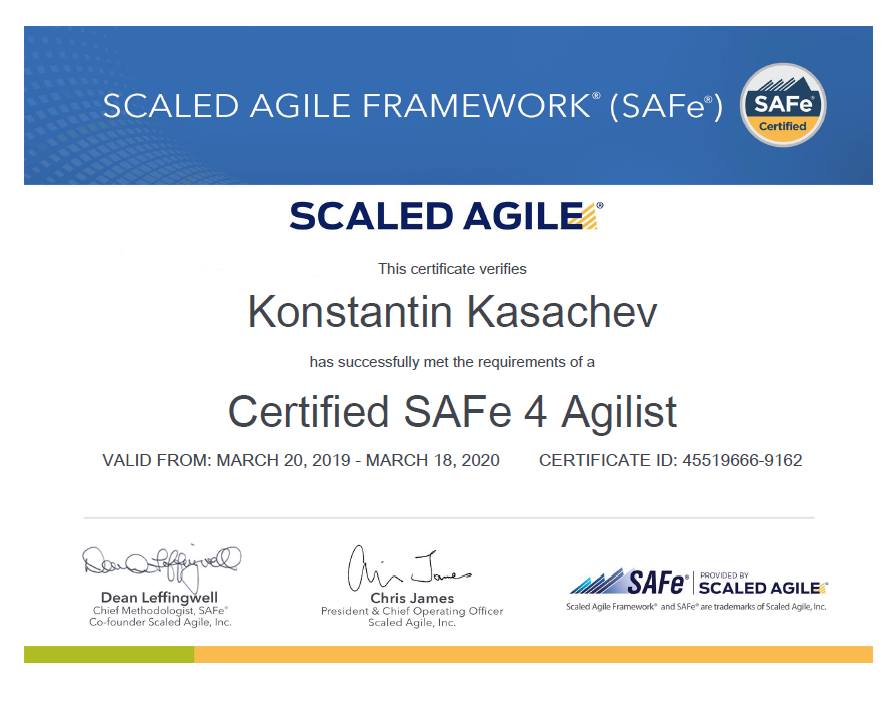 20.03 — Сдал экзамен на SAFe и стал SAFe Agilist’ом. На год.
