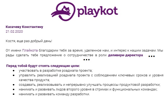 Первое — оффер от компании Playkot (gamedev) и решение увольняться из ЦРТ.