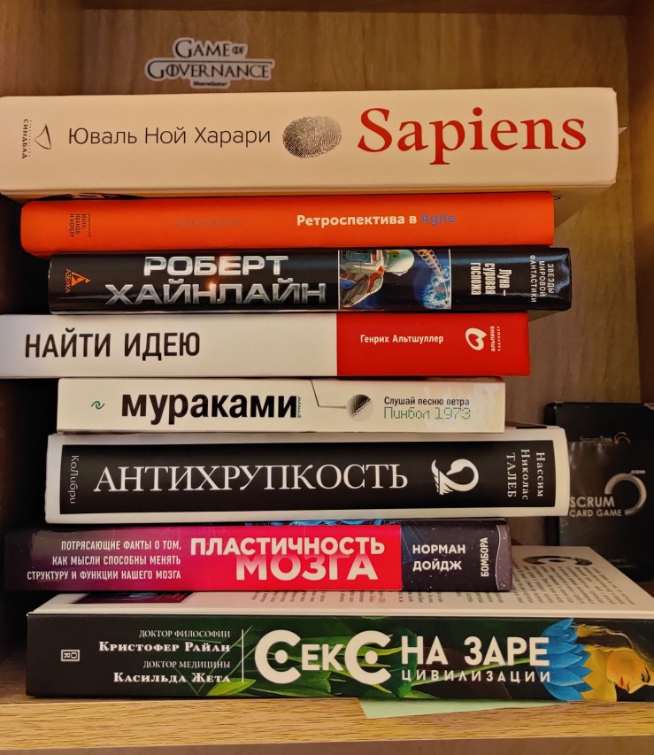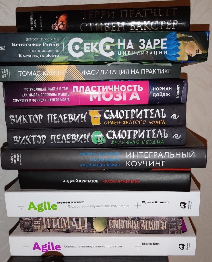 Как итог, опять читал мало — десяток книг за год. Зато, наконец, почти опустошил стопку бумажных книг, которая в последние годы росла быстрее, чем опустошалась.