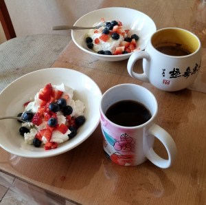 - Ксю за приготовленные завтраки со свежими ягодами. Я настолько не люблю готовить, что когда Ксю (или кто-то из детей) делает что-то даже простое, да ещё и такое аппетитное, очень радуюсь. Иначе мой завтрак обычно состоит из полуфабрикатов. А с меня кофе обычно.