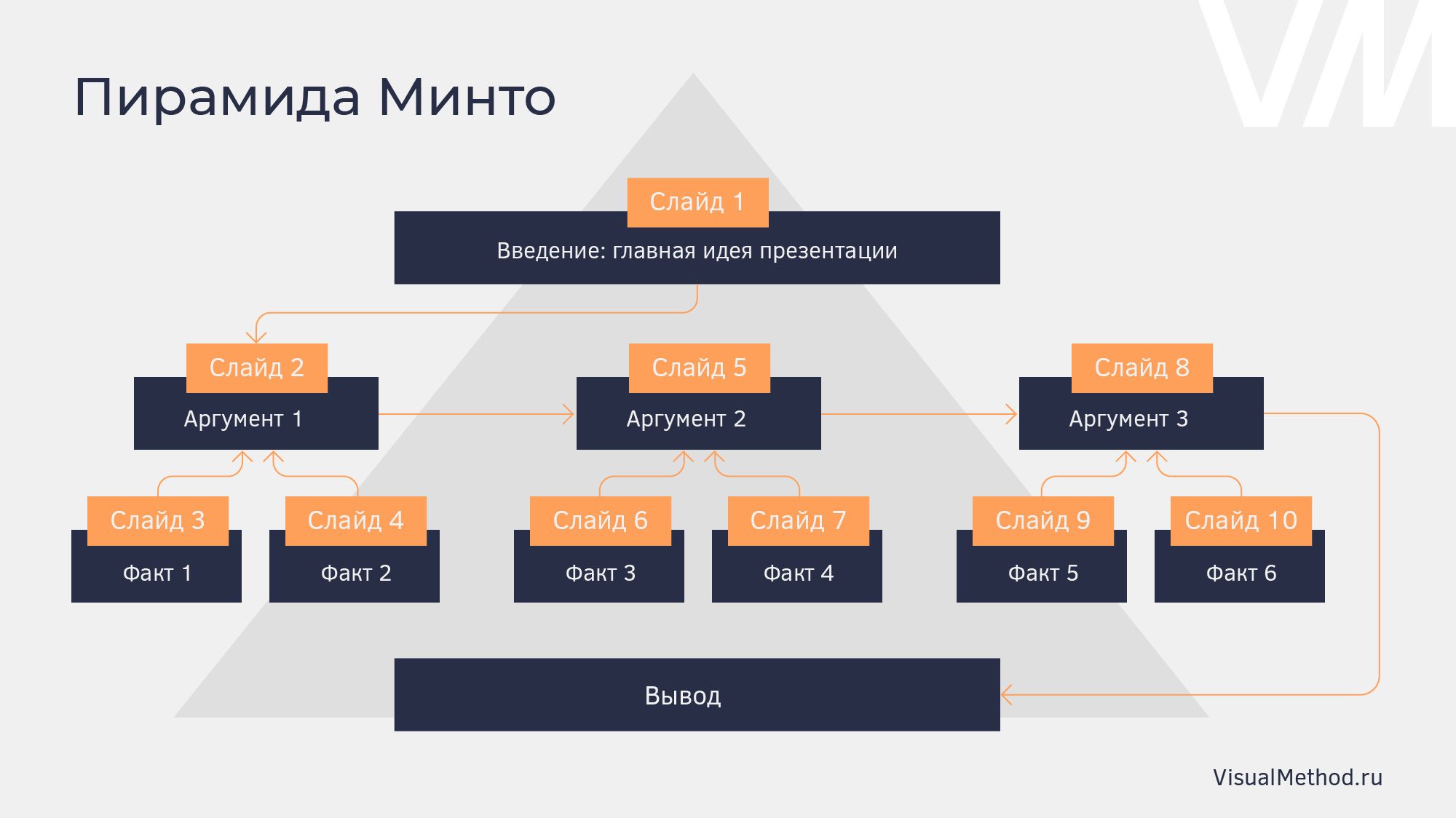 - С рабочего вебинара по навыкам донесения идей — пирамида Минто. Люблю структурирующие концепции.