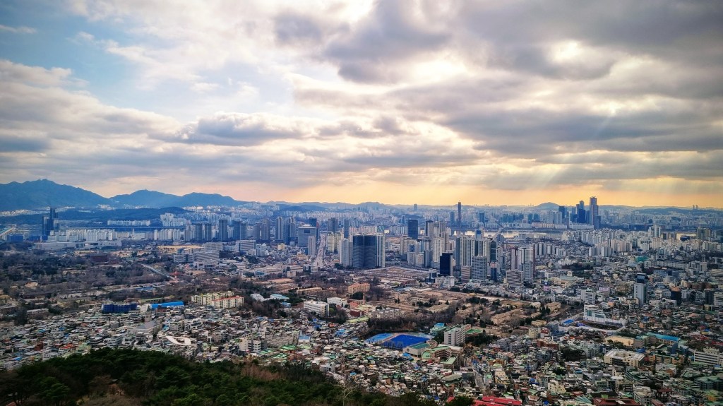 1. Namsan Tower — расположенная на горе Сеульская телебашня. К ней ведёт небольшая канатная дорога. Там достаточно большая смотровая площадка и несколько кафешек