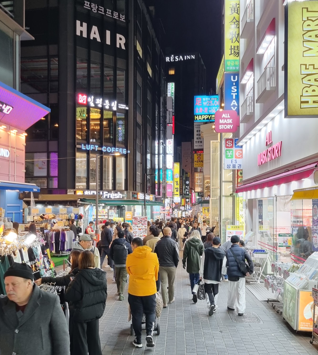 В магазинах из интересного — сосиски на палочках, крабовое мясо (настоящее, а не «крабовые палочки»), хайболы (слабоалкогольные газированные коктейли), рисовое вино Makgeolli/Makkoli (похожее на рисовое молоко) и банановое молоко (похожее на банановое молоко).