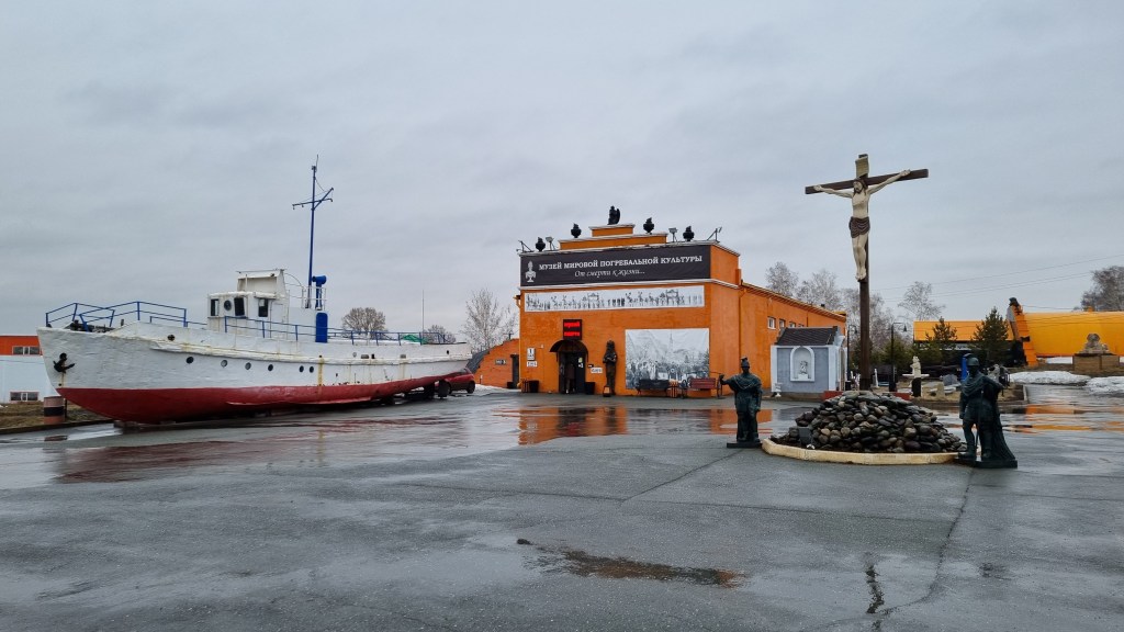 Одно из этих ярких впечатлений — новосибирский крематорий. Вы просто оцените как выглядит его территория. А последнее фото сделано в музее погребальной культуры (или музее смерти) расположенном там же. Вроде бы про смерть, а вроде и не мрачно нифига. И познавательно очень.